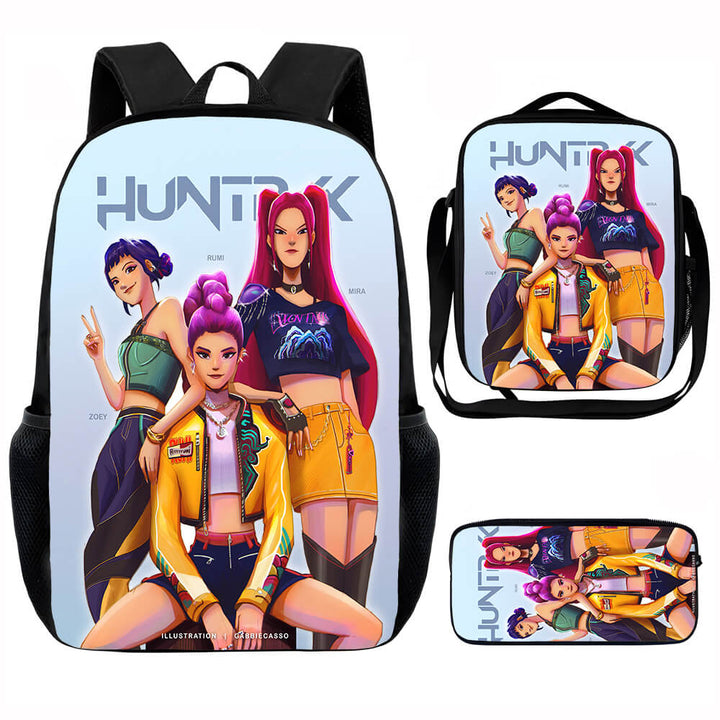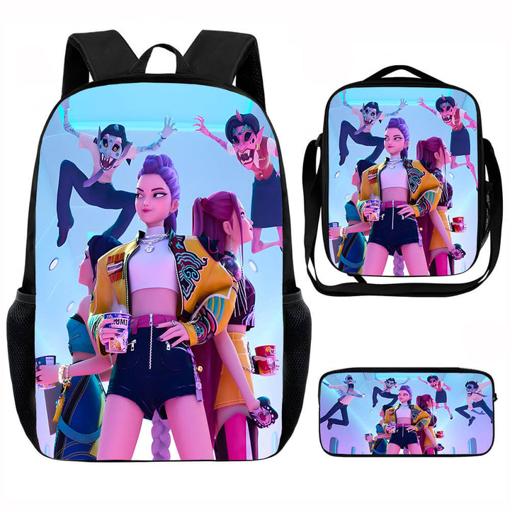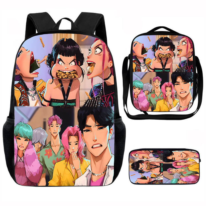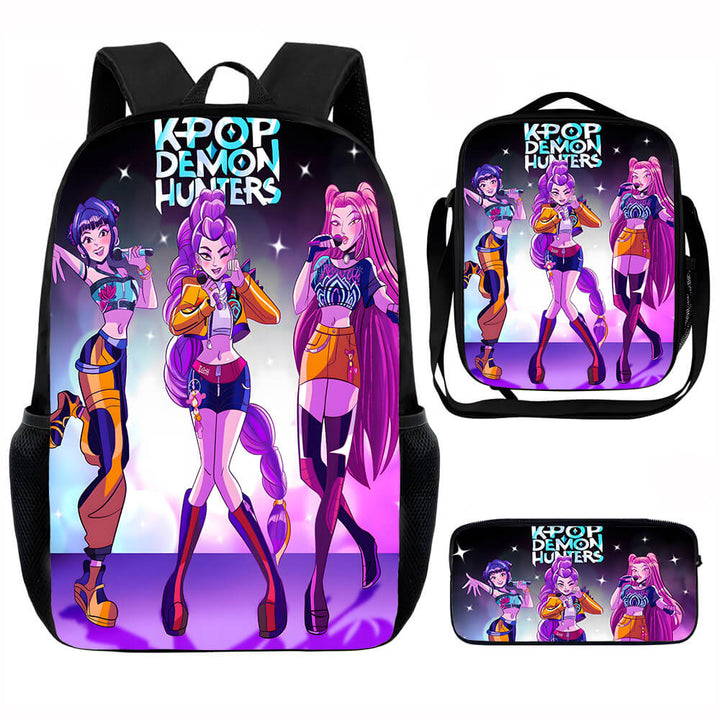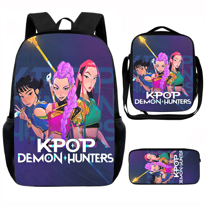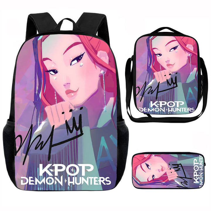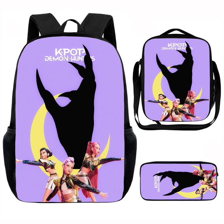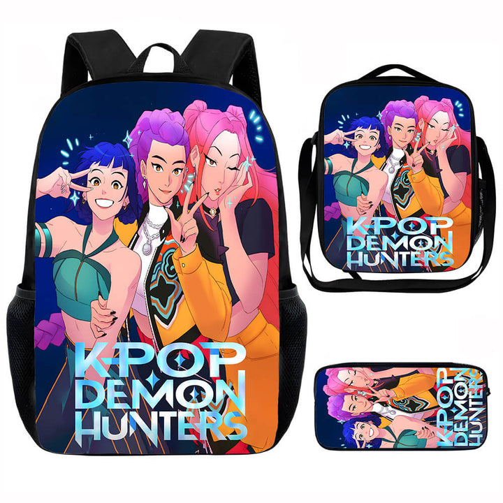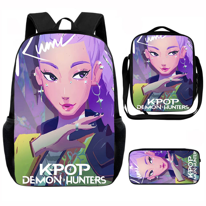 3pcs Kpop Demon Hunters Backpack Set Lunch Bags Pencil Case Laptop Backpack Bookbag
