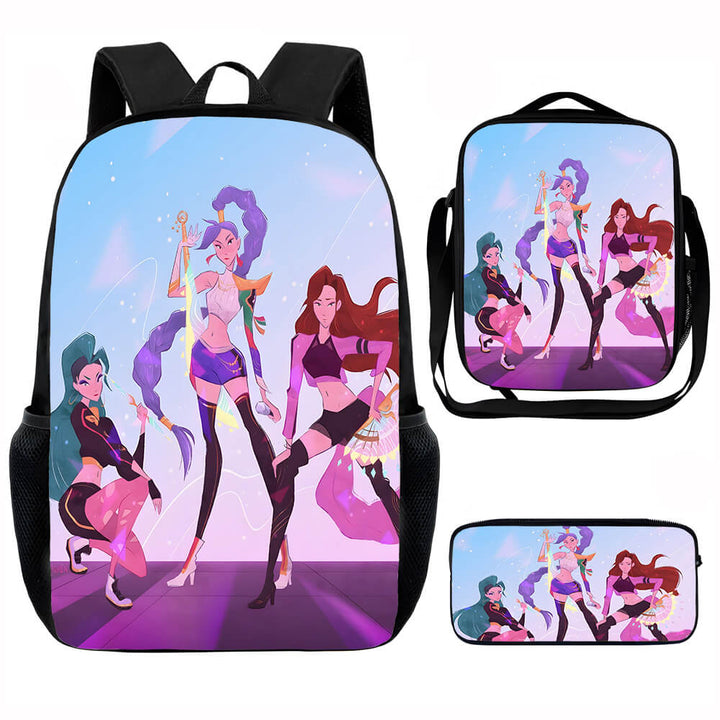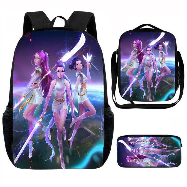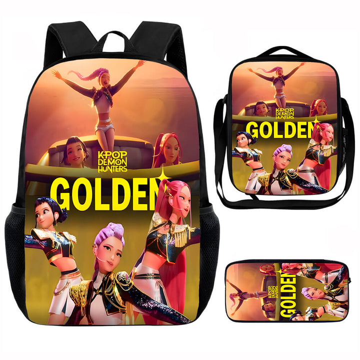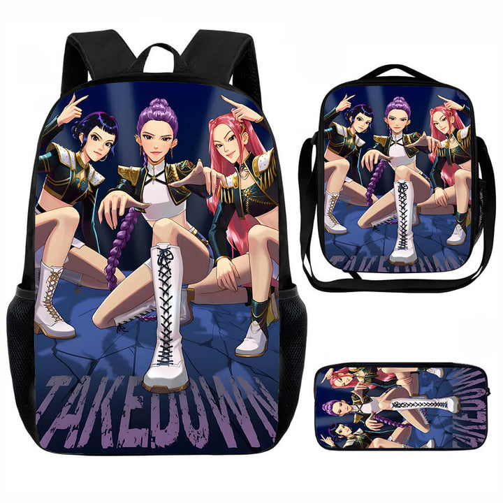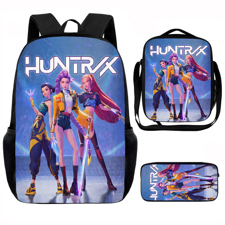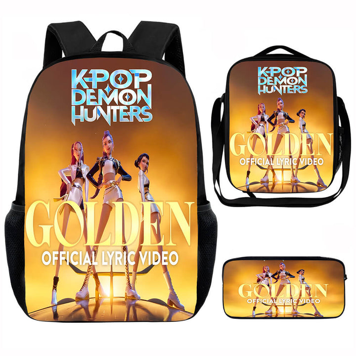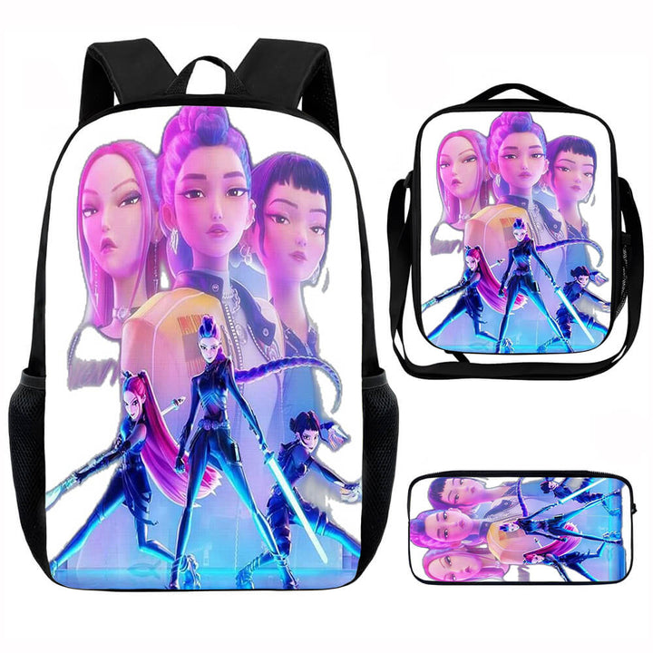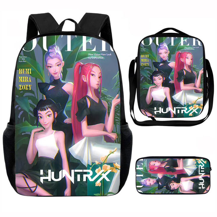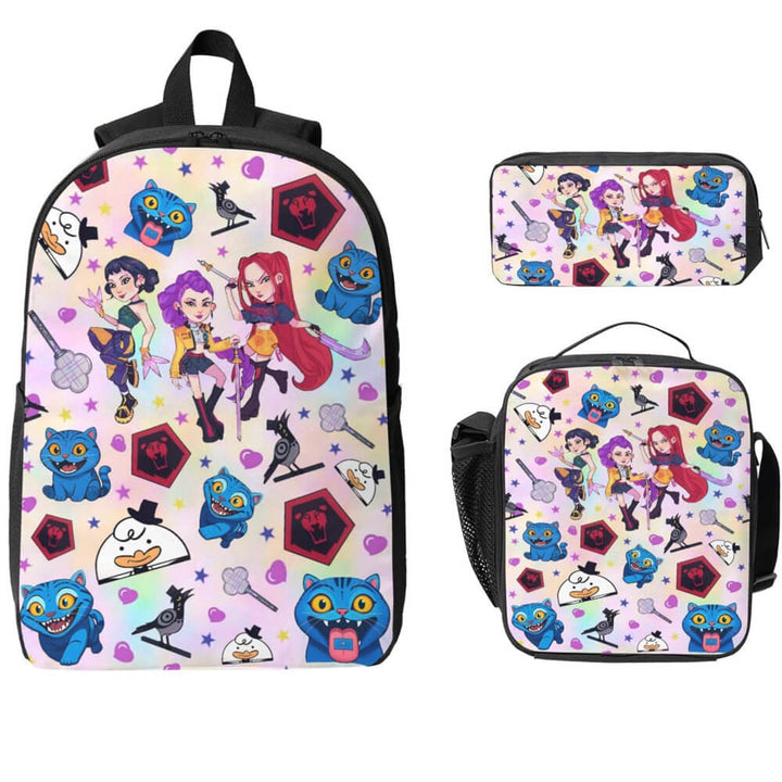 3pcs Kpop Demon Hunters Backpack Set Lunch Bags Pencil Case Laptop Backpack Bookbag