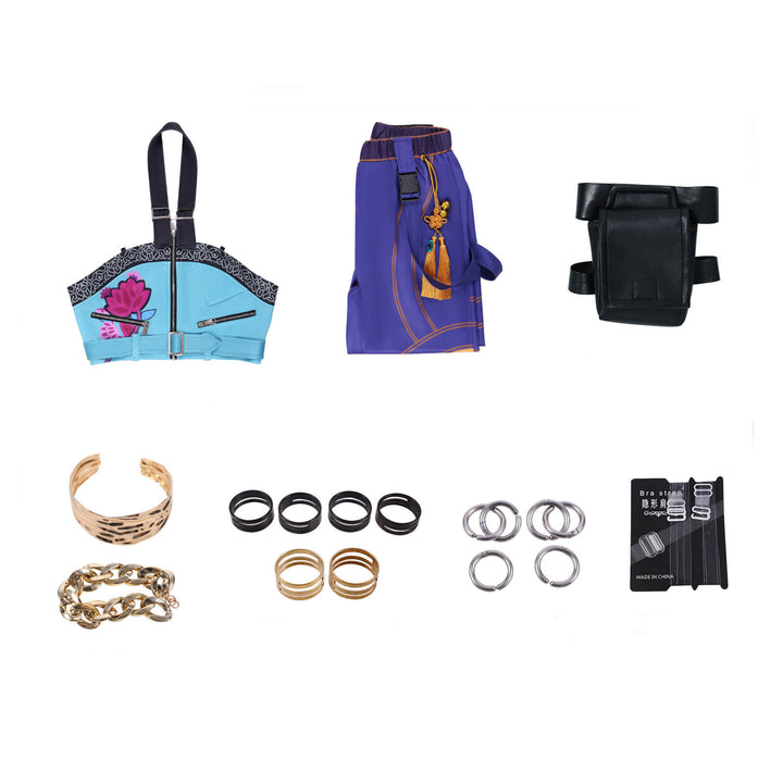 Includes: top,pants,gloves,wrist accessories, rings,and earrings