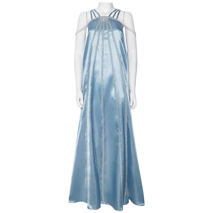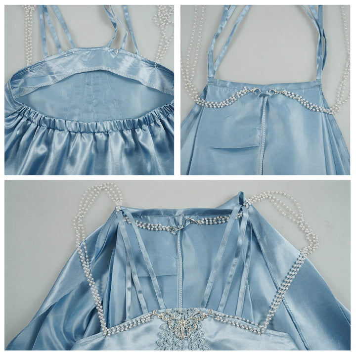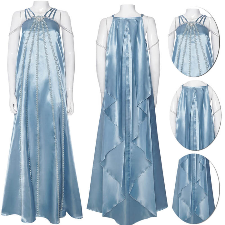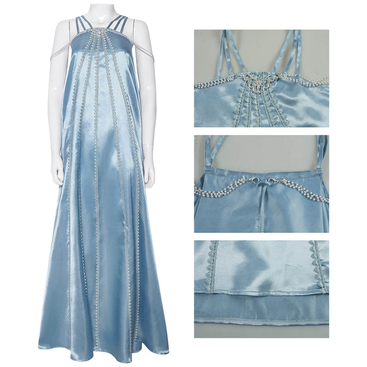 Foyacos Adult Padme Amidala Costume Women Blue Nightgown Sleepwear Dress Carnival Halloween Outfit