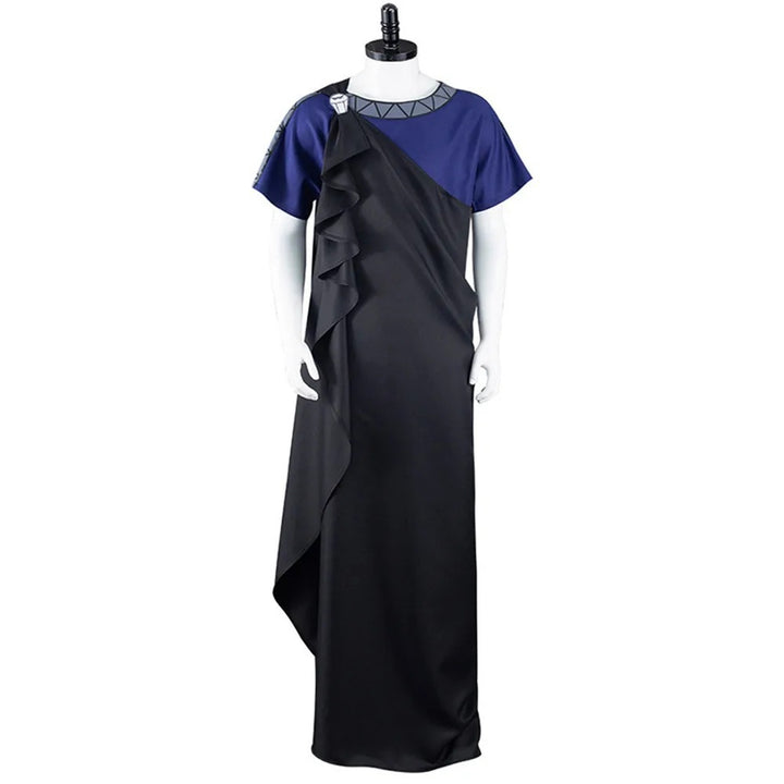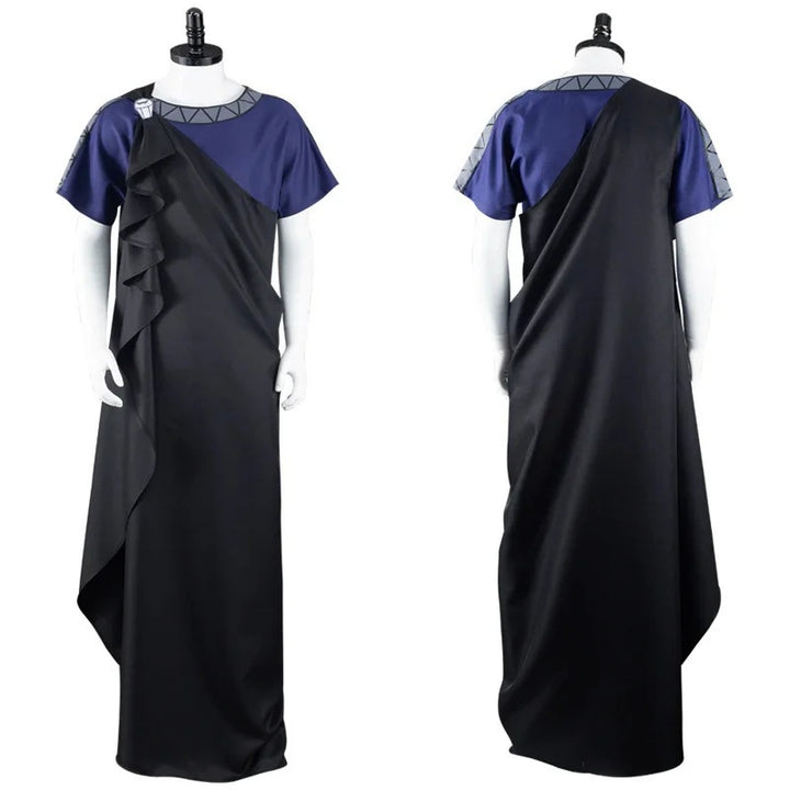 Step into the underworld as Hades with this Greek god cosplay costume for men—complete with dark grey tunic and signature blue wig. Designed for mythological theme events, this outfit brings the ruler of the underworld to life.