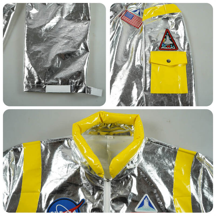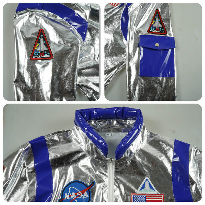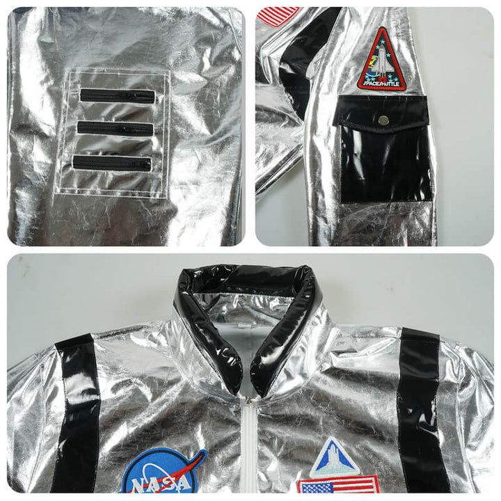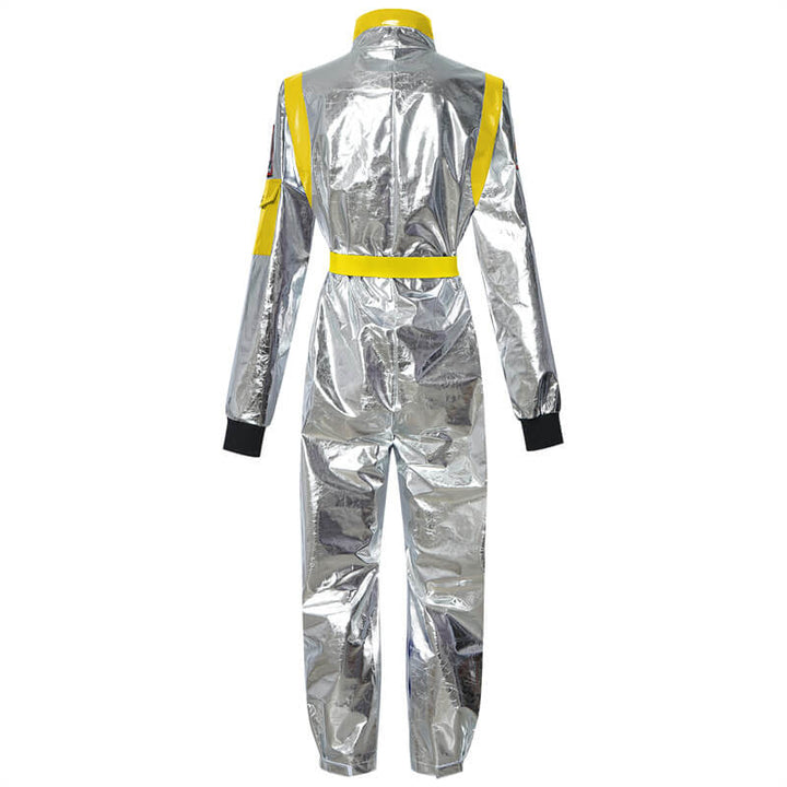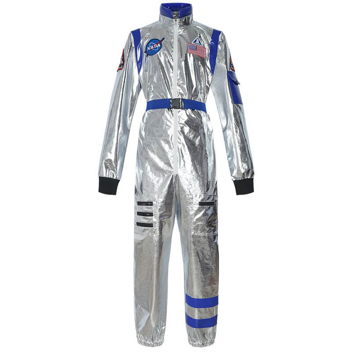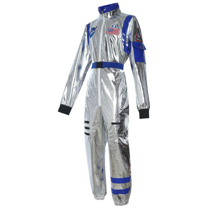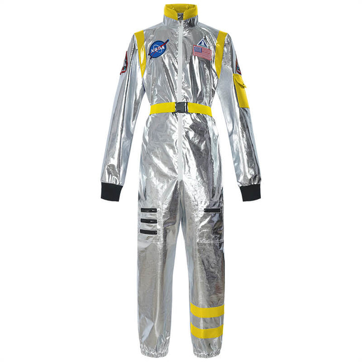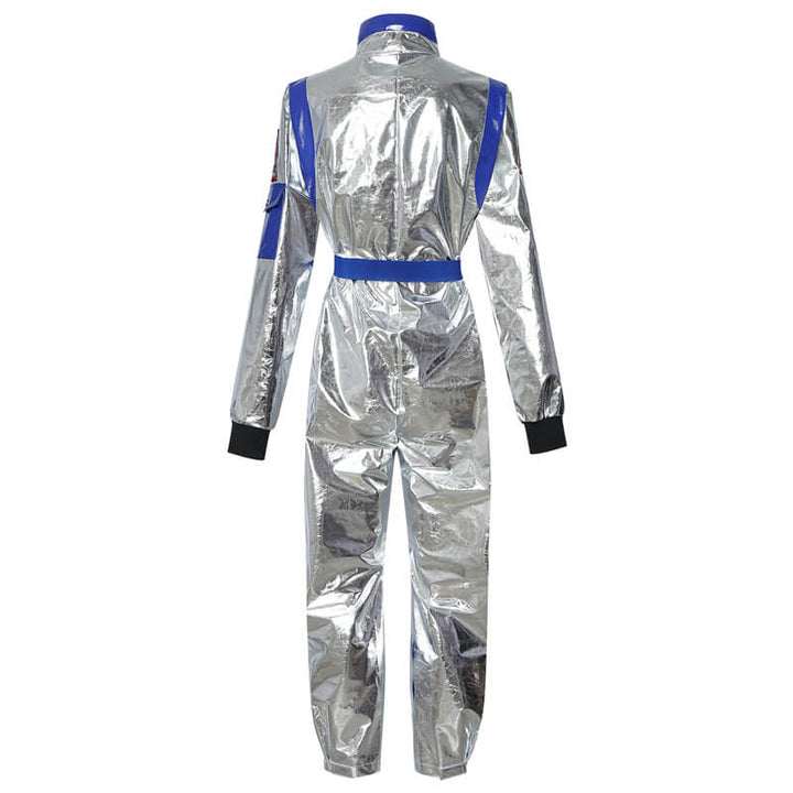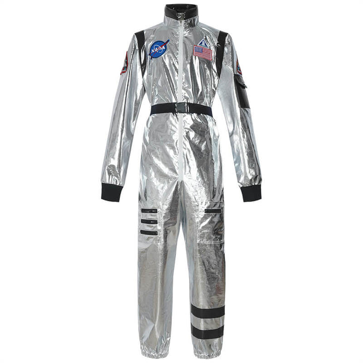 The metallic silver design, detailed chest patchwork, and structured silhouette give you a realistic NASA-inspired vibe—perfect for standing out in a galaxy of ordinary costumes. Lightweight and breathable, this outfit is comfortable enough for long nights of interplanetary partying.