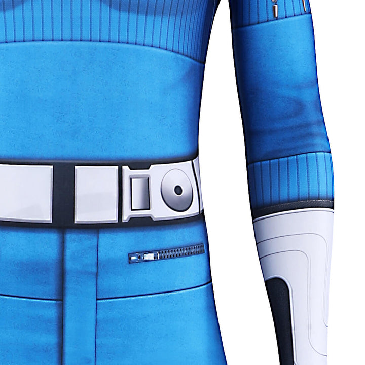 Transform into the brilliant and flexible leader of the Fantastic Four with this Mr. Fantastic costume for adults. Designed to resemble the classic look of the iconic superhero, this blue bodysuit features a printed "4" logo on the chest and detailed muscle shading, making it perfect for Halloween, cosplay conventions, or superhero-themed parties.
