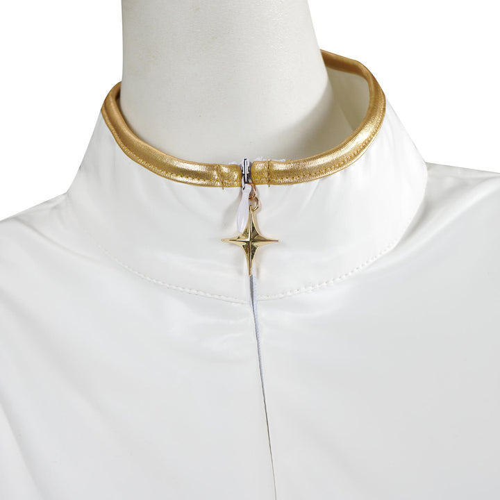 Channel Rumi’s powerful finale look in the white stage outfit from What It Sounds Like, the climactic performance in K‑Pop Demon Hunters. This costume recreation features the layered white top with black underlayer design, symbolizing Rumi’s hidden truths as she steps into the spotlight—just as fans discussed in Reddit’s visual analysis